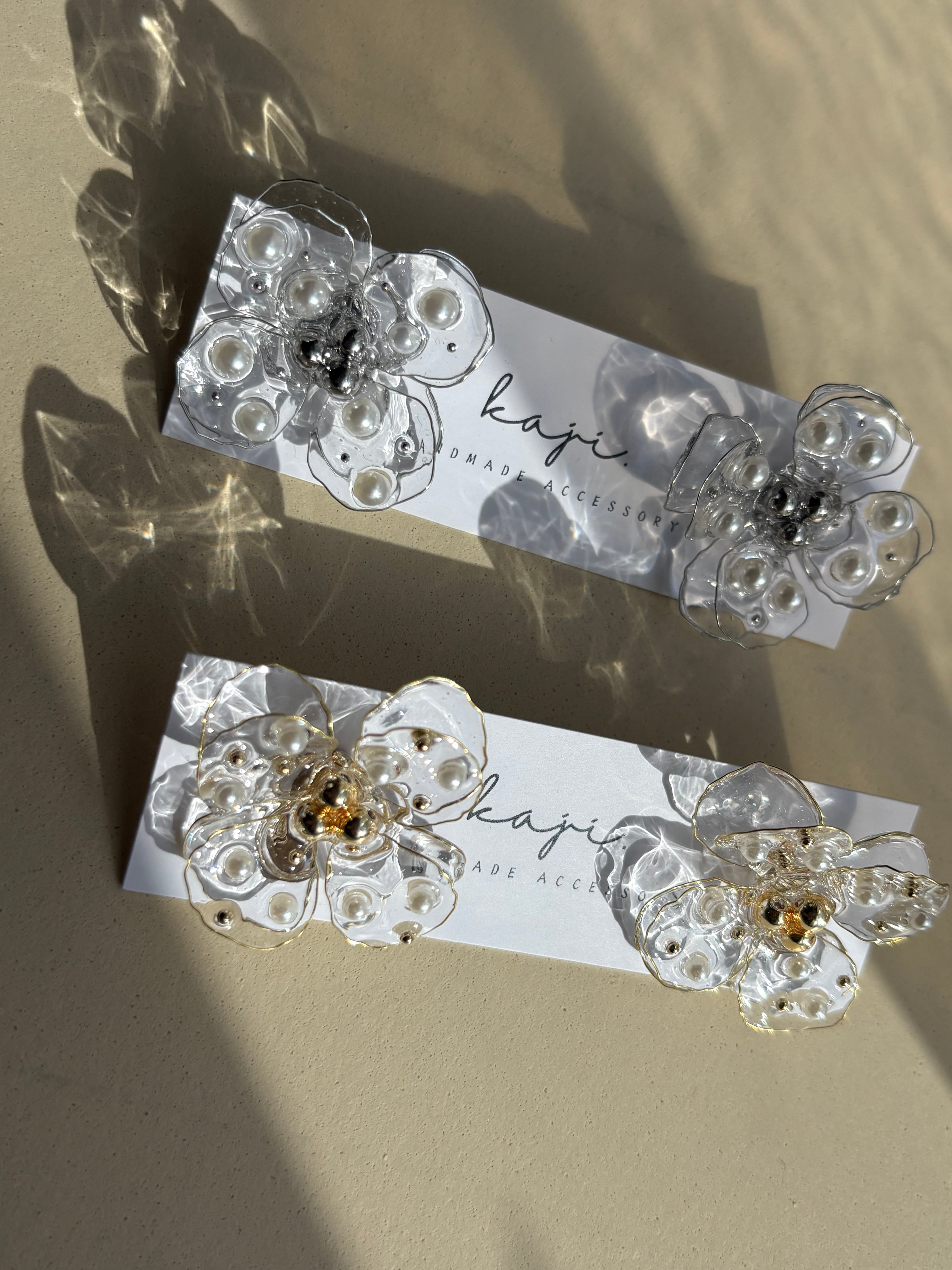 パールとガラスのような透明感のあるお花が特徴のClear Flower Pearl silver